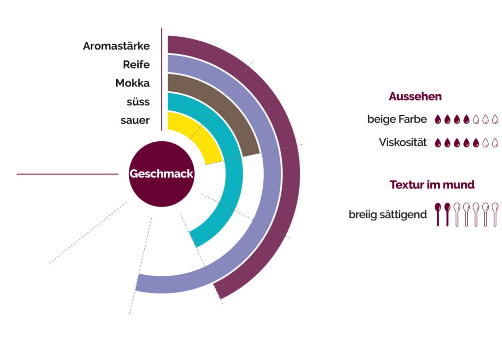 Der perfekte Reifegrad der ausgewählten Früchte verleiht einen natürlich süßen Geschmack und aromatische Noten von Mokka. Durch das Vorhandensein von Stärke kann die Textur dieses Pürees klebrig und mehlig erscheinen.