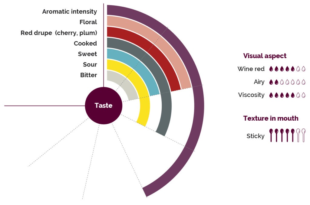 With an intense wine-like color, resulting from the transformation of the flesh with the skin, the blood peach puree has a thick consistency. In the mouth, it offers a coating sensation, characteristic of this fruit.