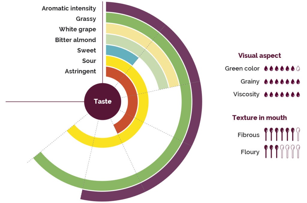 This puree offers the strong tartness of the Granny variety. More subtle notes of green flavors, such as herbaceous, bitter almond, and grape, can also be detected.