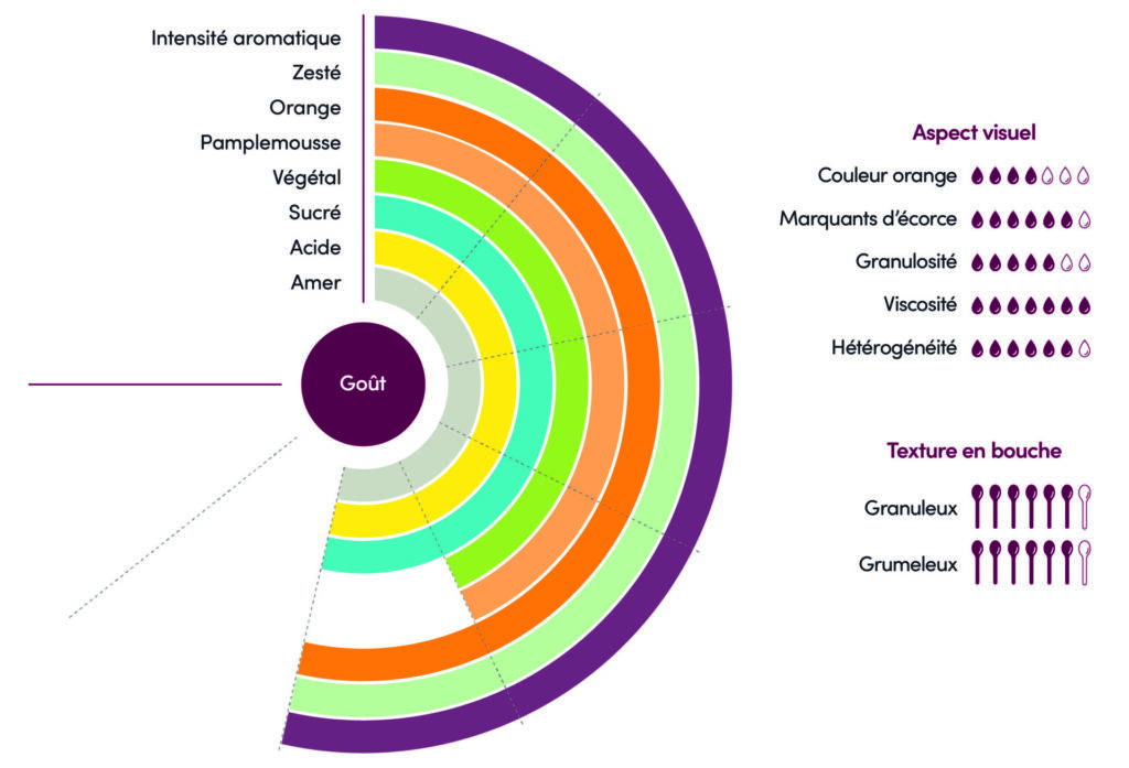 This puree reveals a strong aromatic intensity with a perfect balance of sweetness and bitterness. Zesty notes are distinguished, along with hints of other citrus fruits such as orange and pink grapefruit.