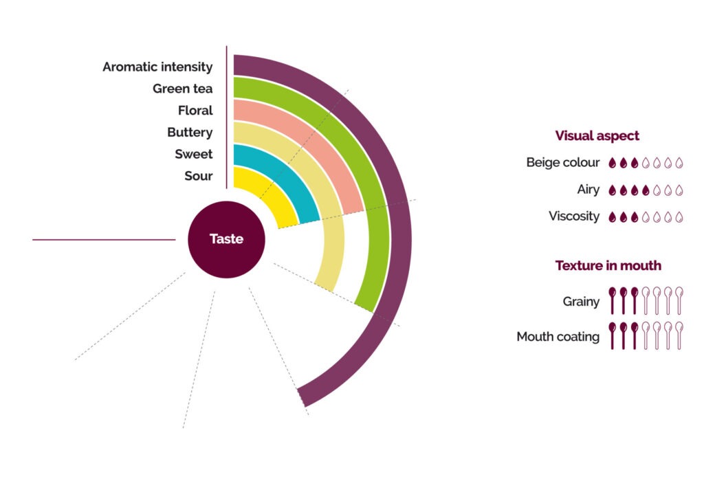 This puree contains aromatic notes of other orchard fruits (such as apple), dry notes reminiscent of green tea, and caramelized hints. Its grainy texture in the mouth reveals the characteristic seeds of the pear.