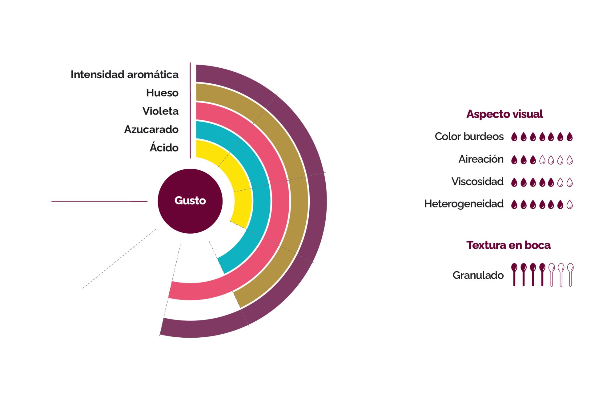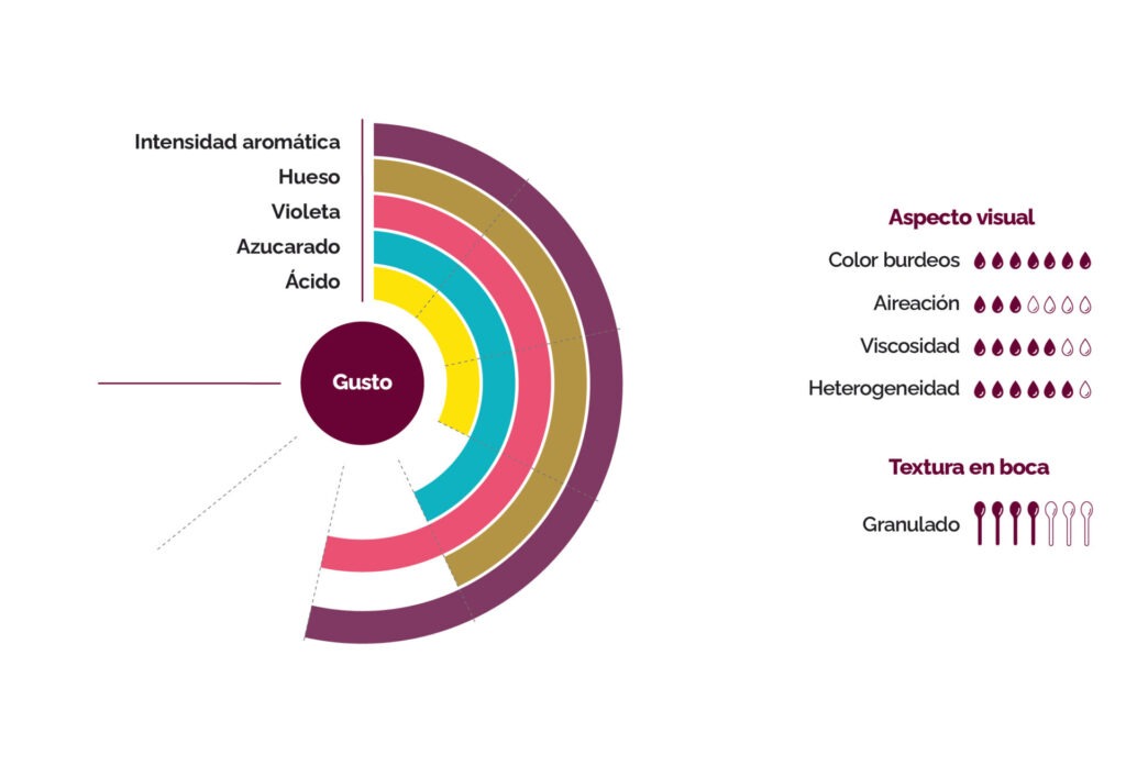 El puré de cerezas negras de Basilea, de gran riqueza aromática, se caracteriza por el sabor naturalmente dulce de la fruta, enriquecido por notas ácidas a las que se añaden potentes notas florales de violetas y notas de almendras amargas debidas a la presencia del hueso durante el procesado.