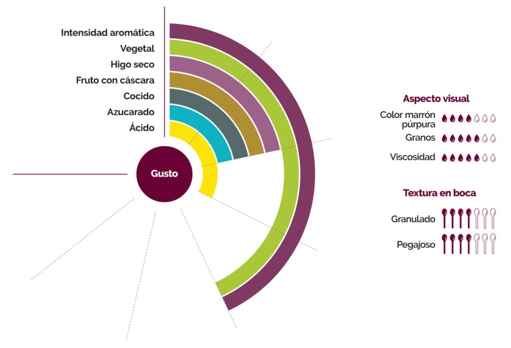 La degustación revela las características aromáticas de la fruta fresca : las notas aciduladas y vegetales se equilibran con el sabor naturalmente dulce de los higos recogidos en su madurez. De forma más sutil, encontramos notas de frutos secos como la castaña.