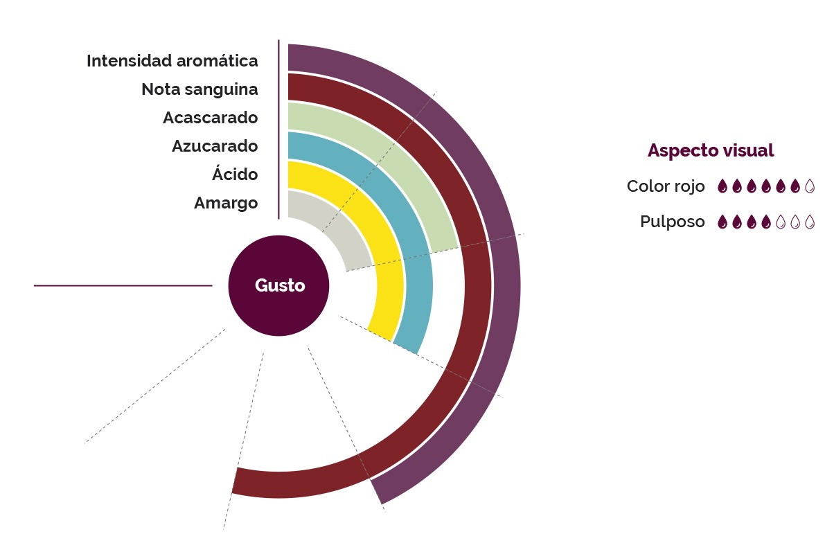 La variedad Moro aporta el color rojo y la Tarocco aporta el equilibro dulce/ácido. En este puré encontramos todas las características de la nota sanguina.