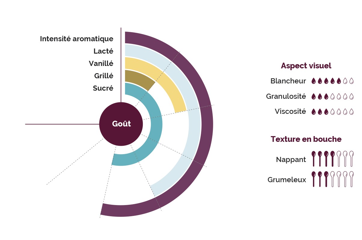 Le produit a une texture onctueuse grâce à un taux de matières grasses élevé. Ces lipides sont aussi à l’origine des notes aromatiques de lait de coco retrouvées dans cette purée.